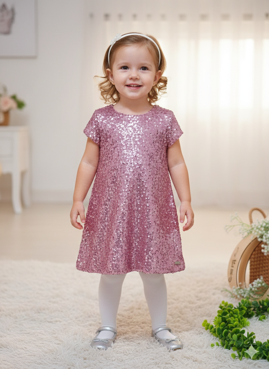 Abitino scintillante di colore rosa.