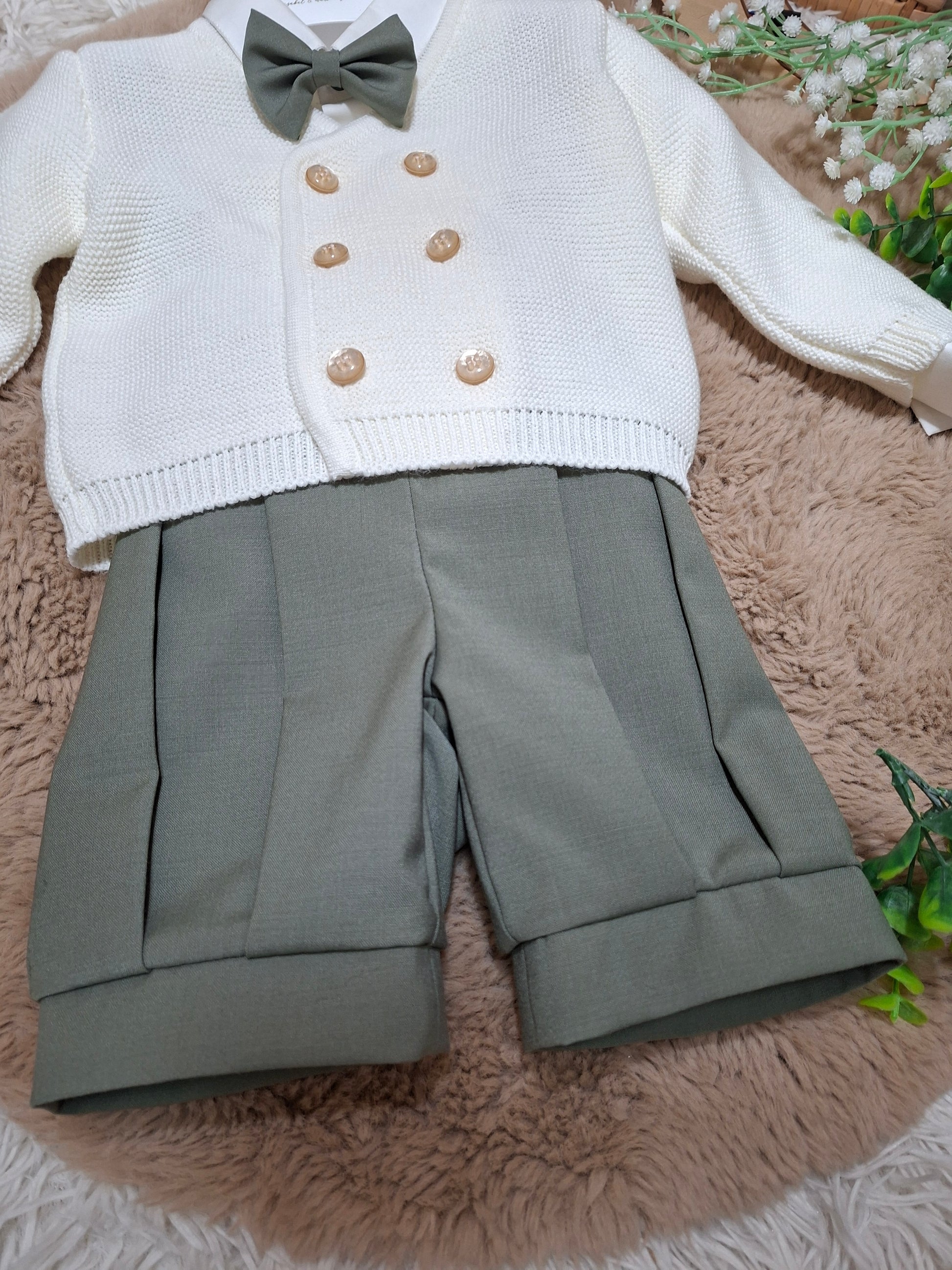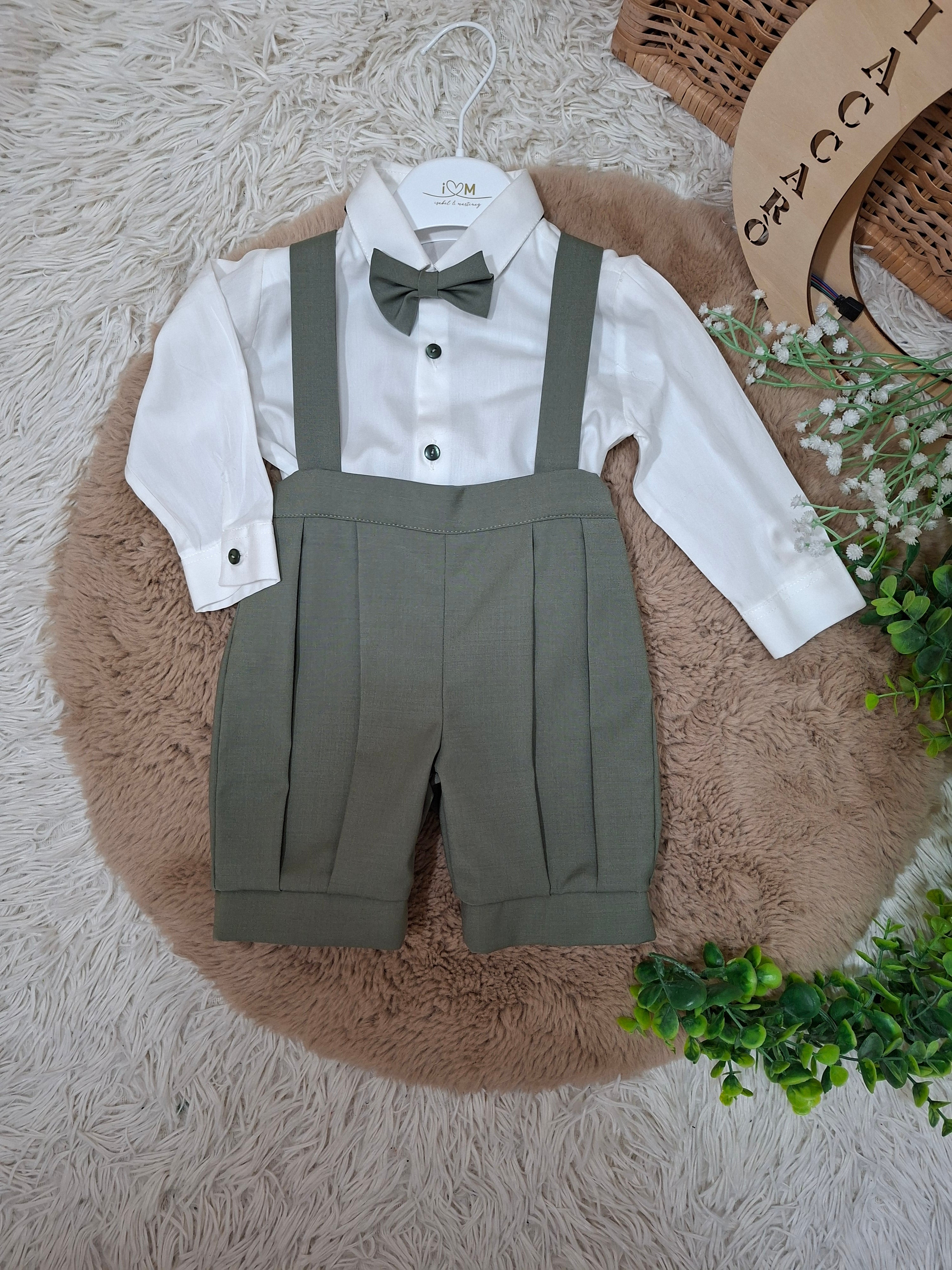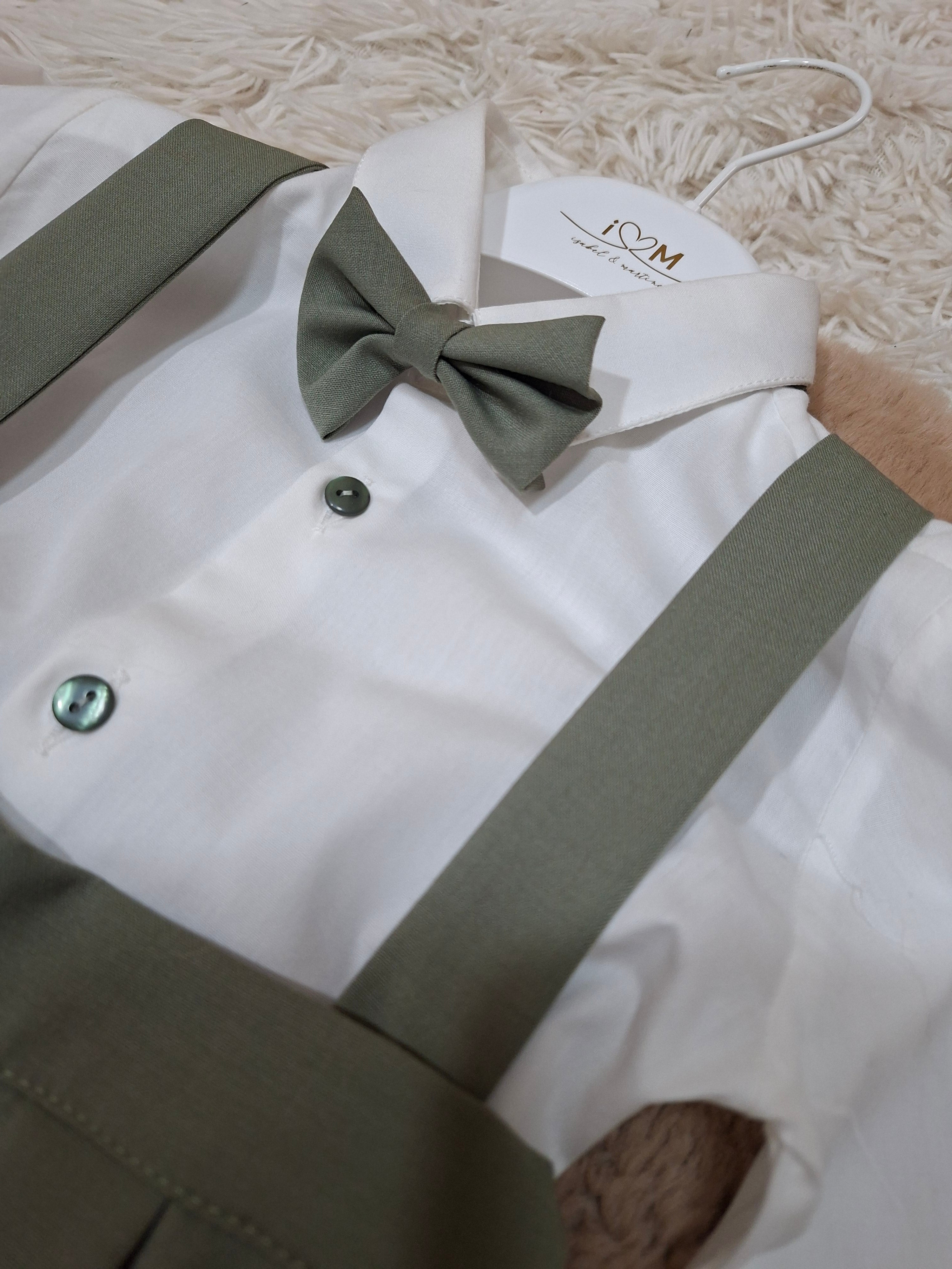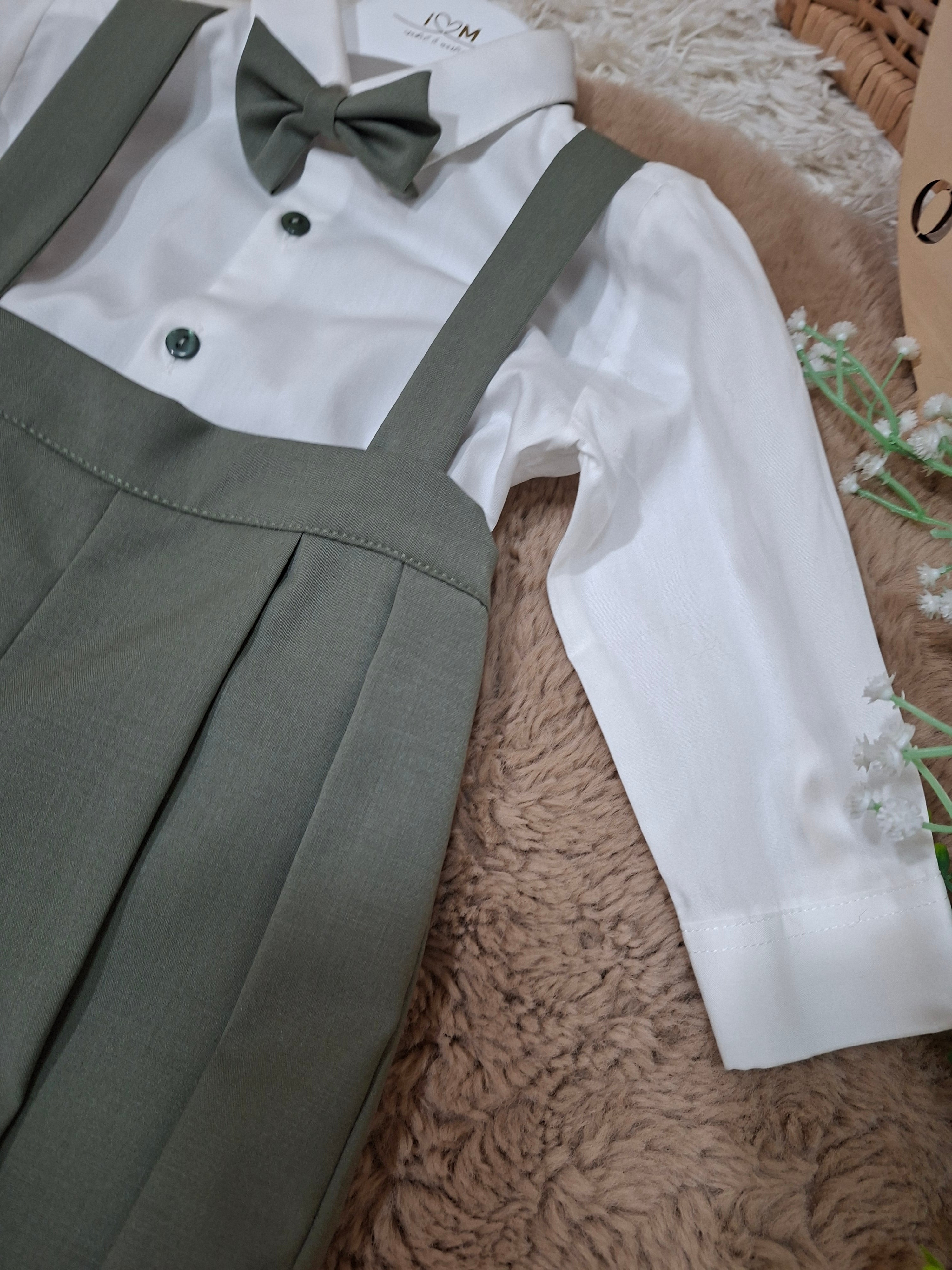 Abitino con bretelle , camicia papillon e cardigan.
