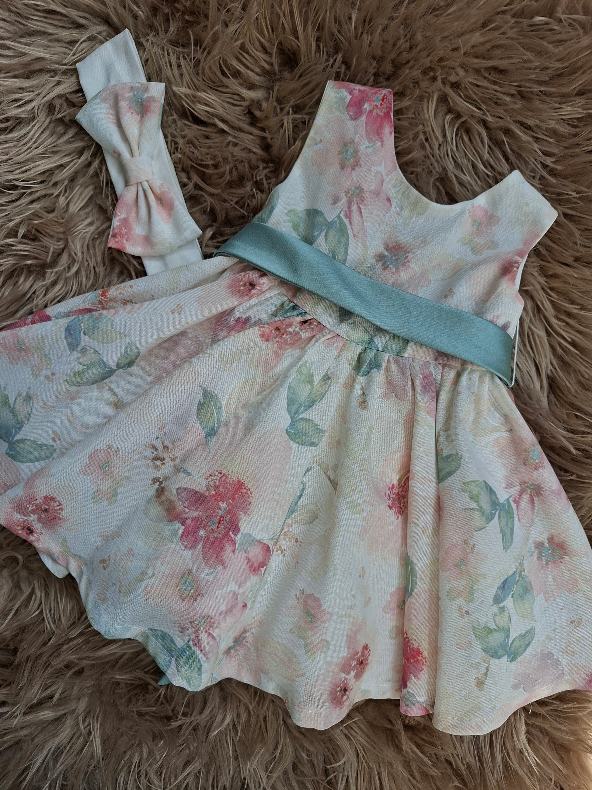 Abito delicato e raffinato dai colori chiari.