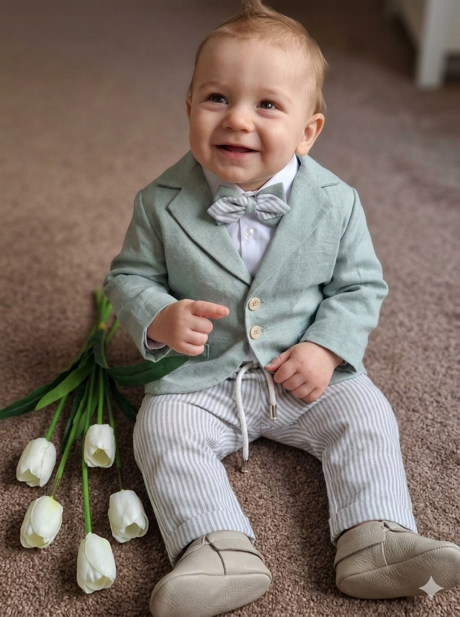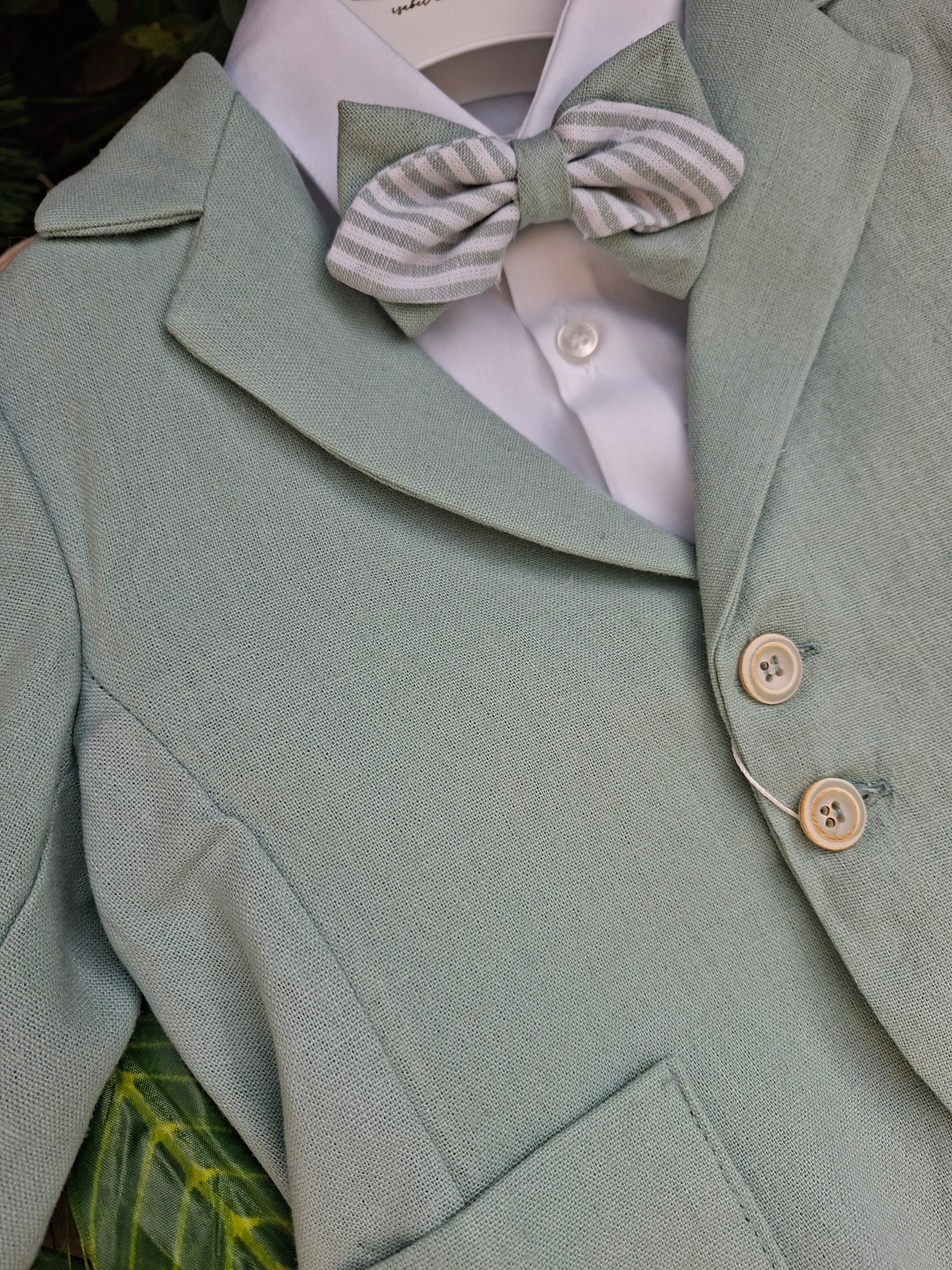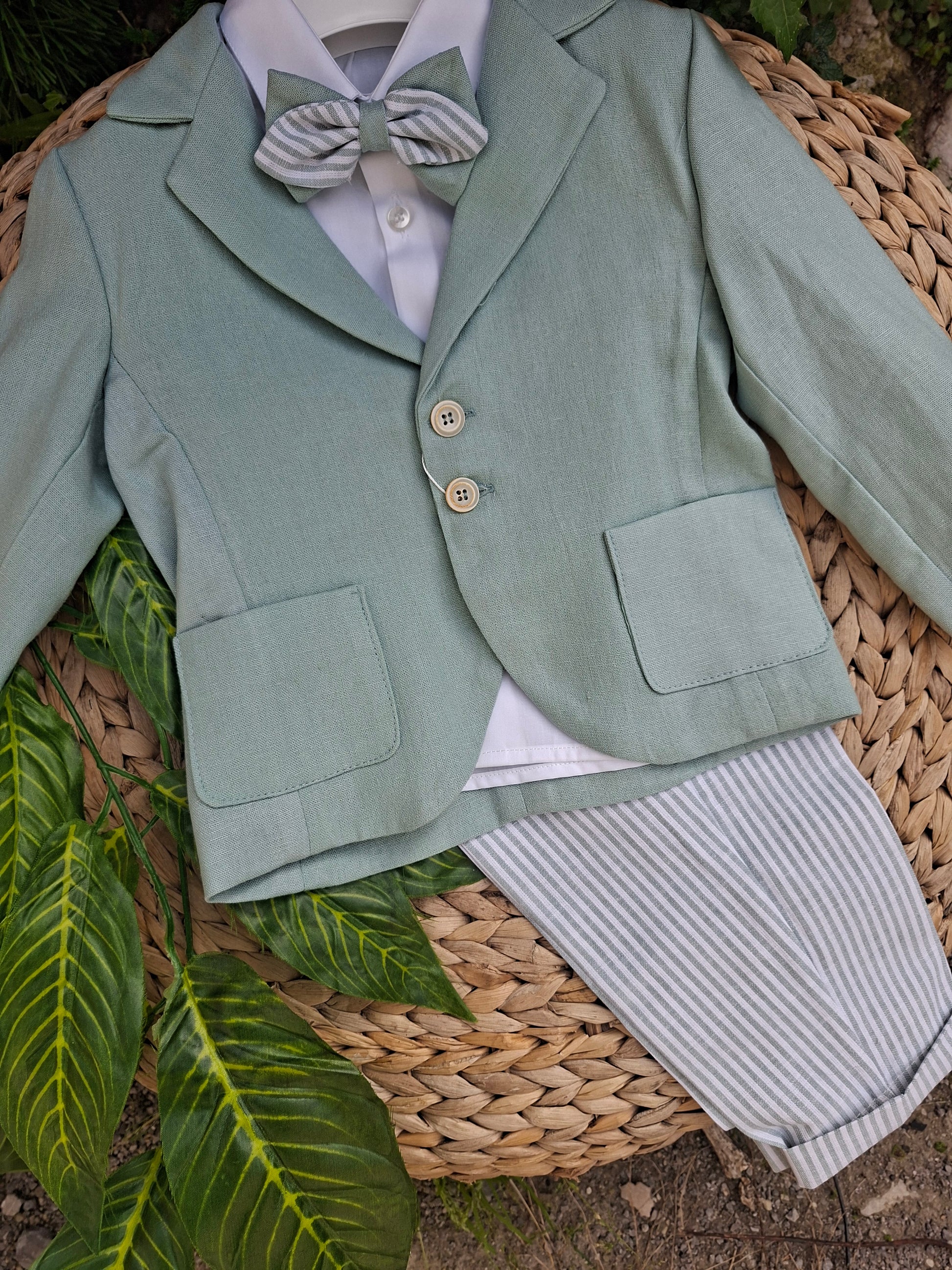 Abitino composto da camicia ,papillon, giacca e pantalone con laccetto in vita.