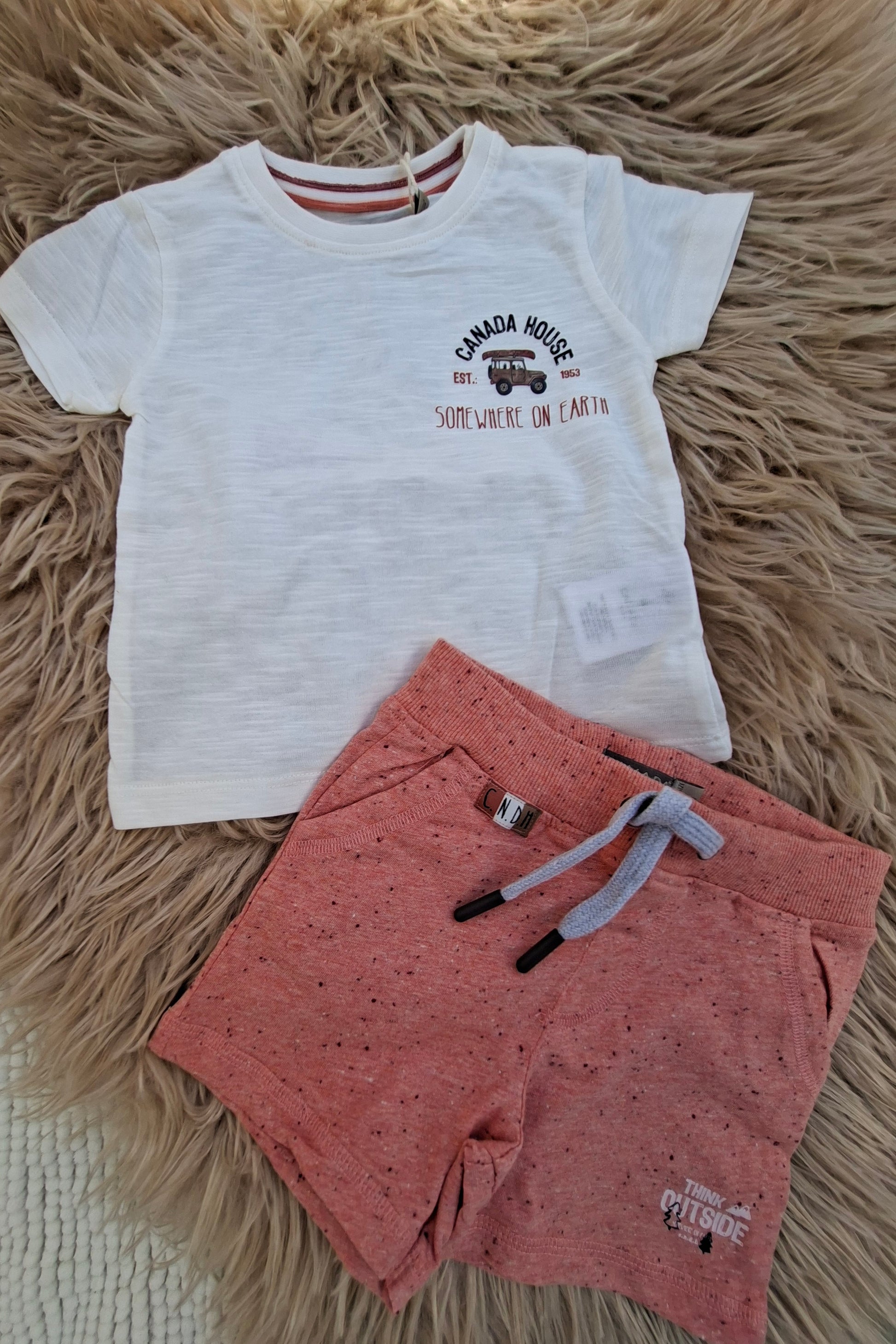 Maglietta manica corta e pantalone corto con molla regolabile in vita.