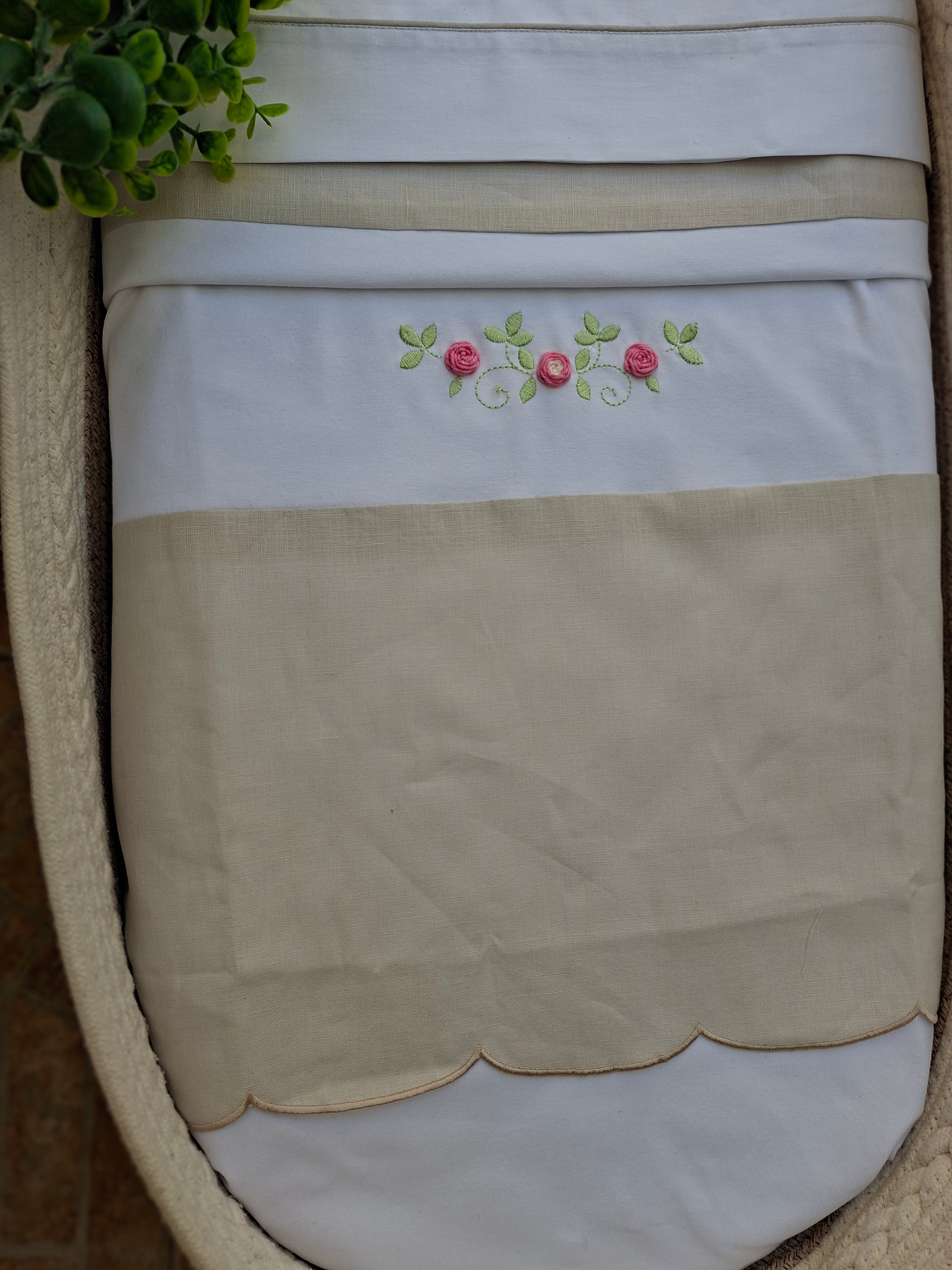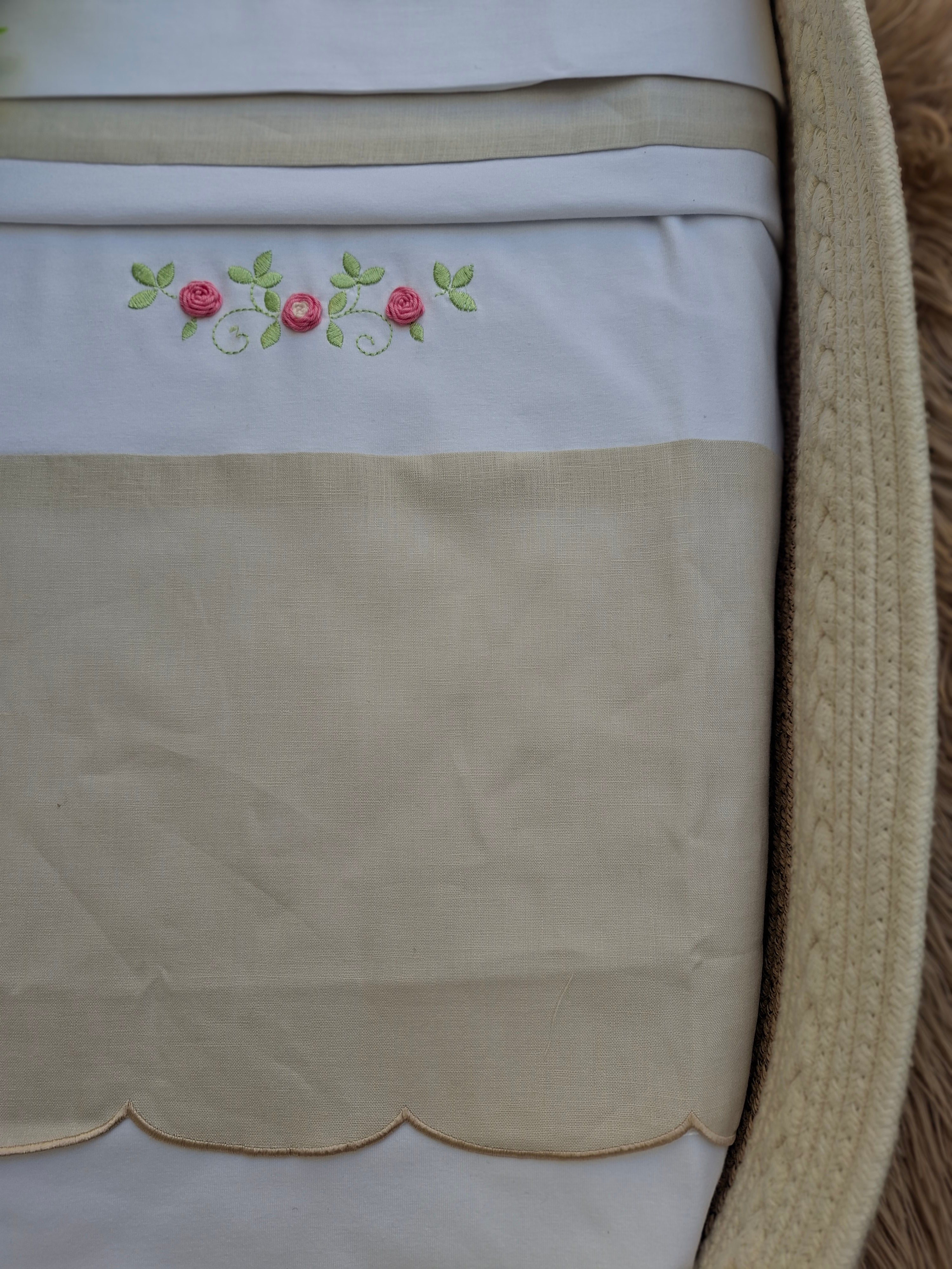 Coperta in puro lino 100%,con applicazioni di roselline centrali.
